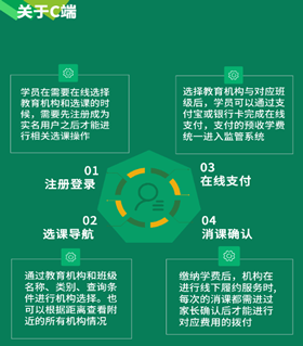 U培+:平臺是基于“民辦教育全場景綜合服務(wù)+資金監(jiān)管”的互聯(lián)網(wǎng)+模式,通過“行政管理+金融監(jiān)管”的結(jié)合,實現(xiàn)對民辦教育機(jī)構(gòu)的辦學(xué)審批、師資建設(shè)、教學(xué)質(zhì)量、服務(wù)質(zhì)量、誠信監(jiān)督、學(xué)費監(jiān)管、異動預(yù)警等全生命周期管理。